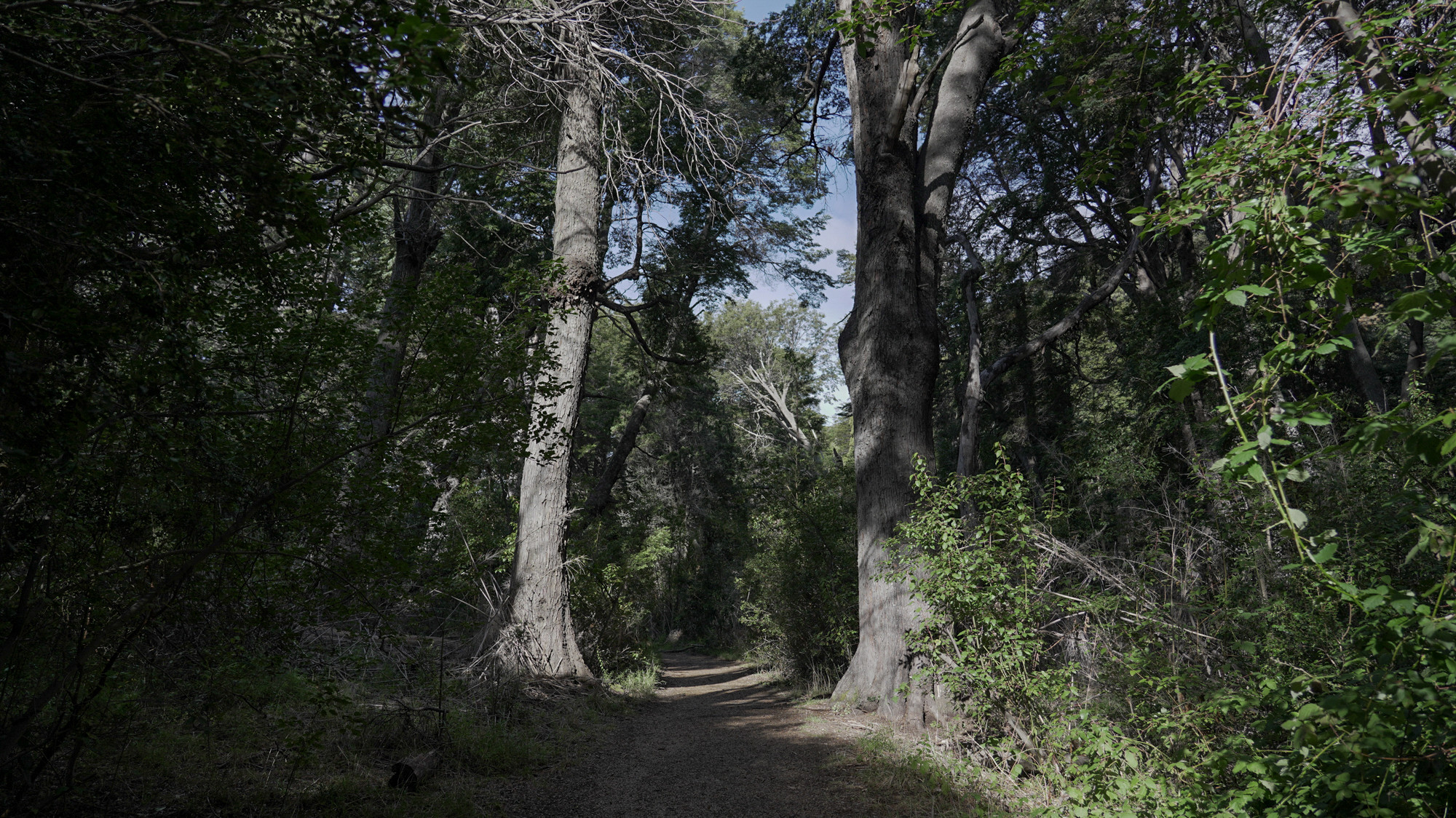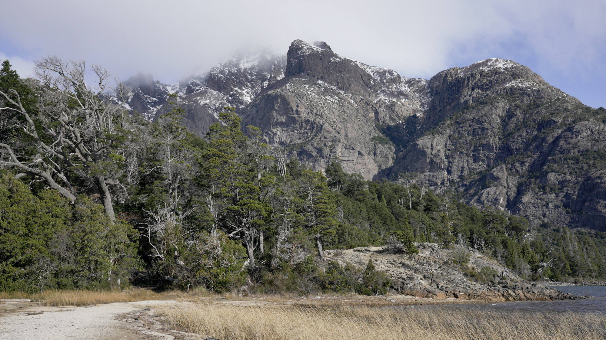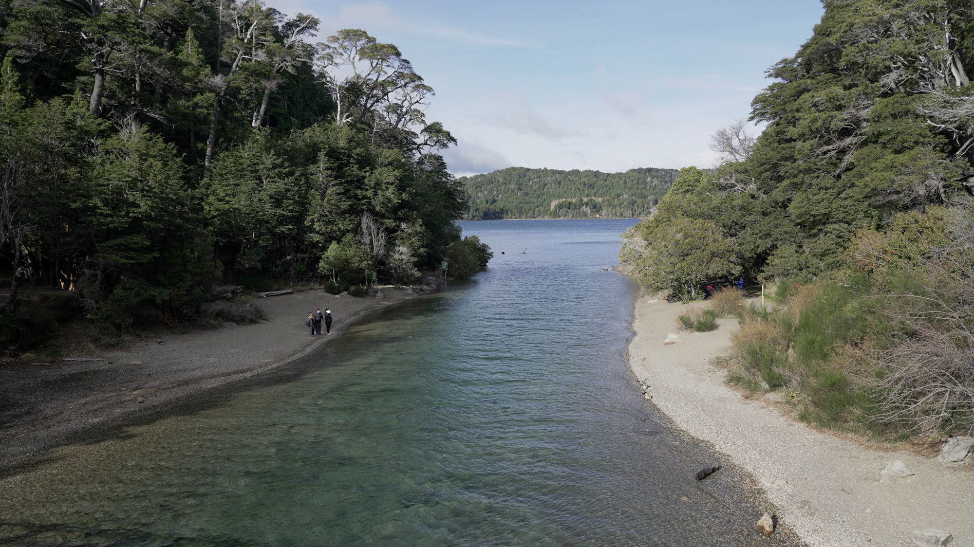 Sendero bosque de coihues / Jean Sebastián StudlerA lo largo del paseo, el entorno permite registrar transiciones visuales entre espacios forestales densos y amplias superficies lacustres con vistas directas a los cerros Capilla y López. La playa se caracteriza por la presencia de juncos y troncos quemados sobre la costa, elemento distintivo que aporta identidad escenográfica singular.